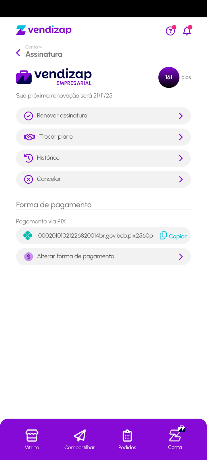 No menu inferior da tela, toque na opção "Conta" para visualizar os dados da sua conta e informações da sua assinatura.