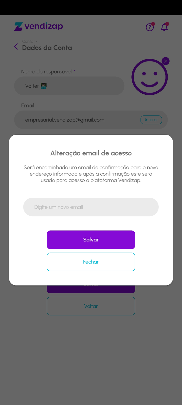 O e-mail utilizado para login na plataforma Vendizap também é o mesmo endereço usado no contato com os seus clientes. Por isso, manter esse dado atualizado é essencial para garantir uma comunicação eficiente e acesso seguro à plataforma.