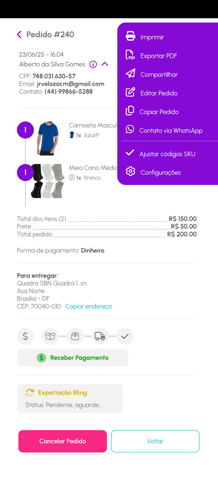 - Abre o WhatsApp com o contato do cliente, permitindo enviar atualizações ou tirar dúvidas rapidamente.