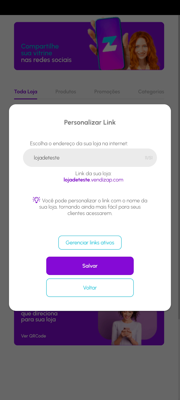 Você pode fazer a edição do seu link quando houver necessidade, Você poderá definir o nome do seu link dentro do domínio vendizap.com.