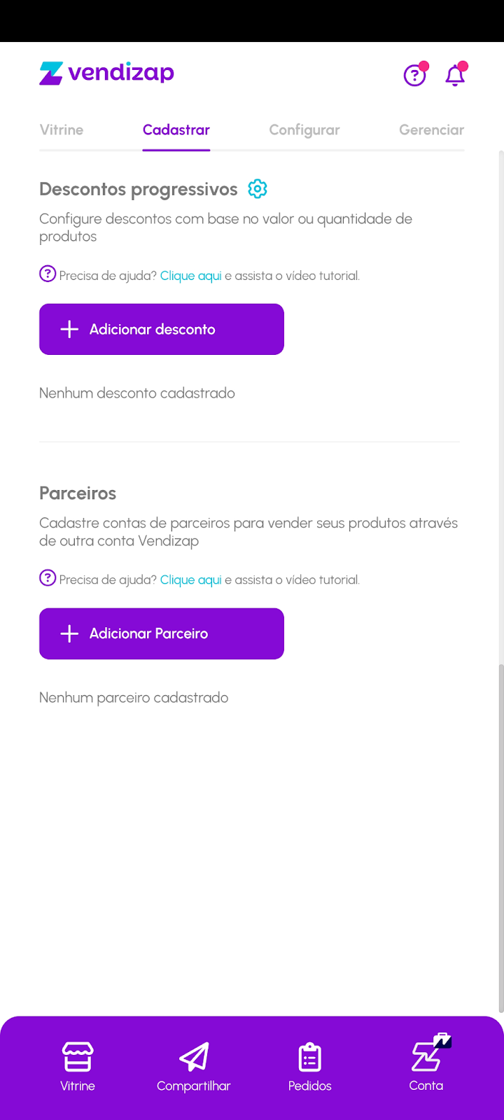 No menu inferior, clique em "Cadastrar" e acesse a seção Parceiros.