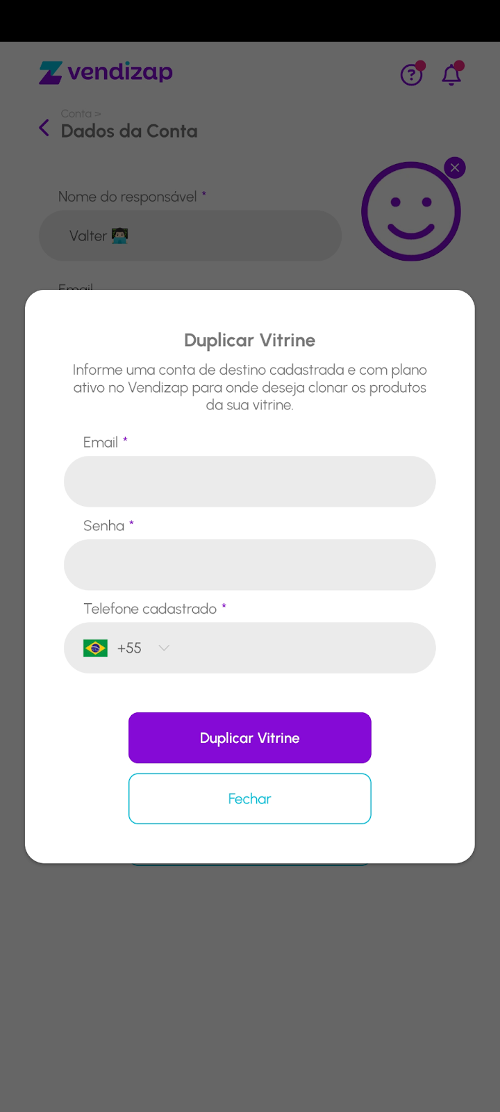 O recurso Duplicar loja permite copiar rapidamente os dados de uma conta Vendizap para outra, facilitando a criação de novas lojas com a mesma estrutura de produtos e categorias.