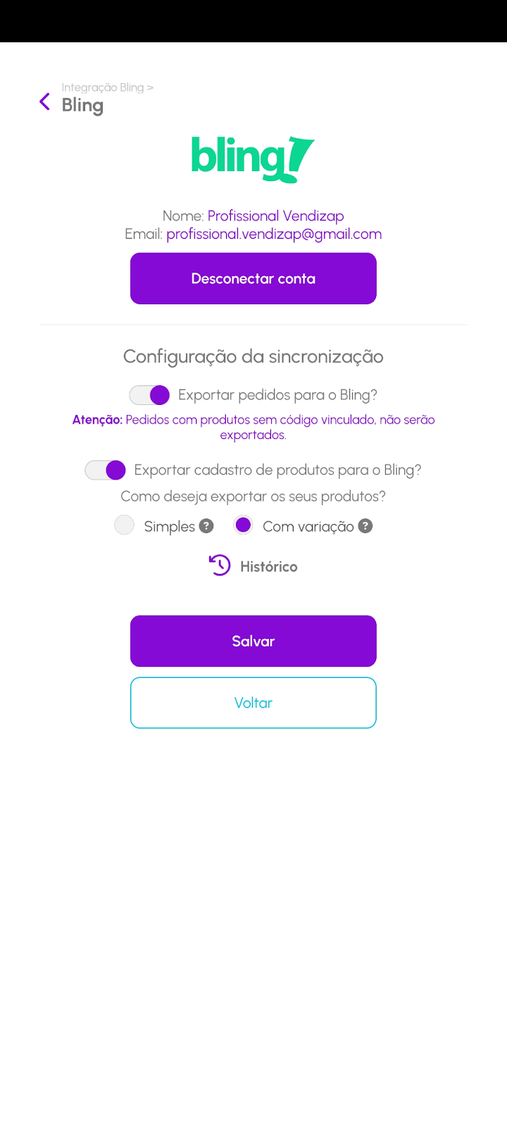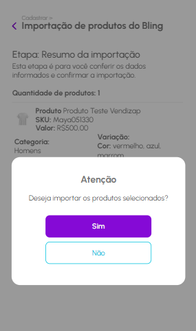 Importa o cadastro de produtos com suas categorias e variações diretamente do Bling para o Vendizap.