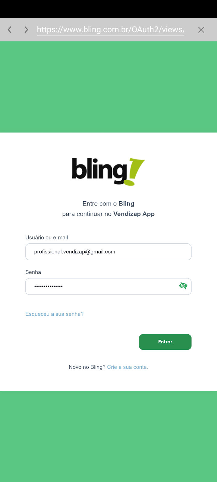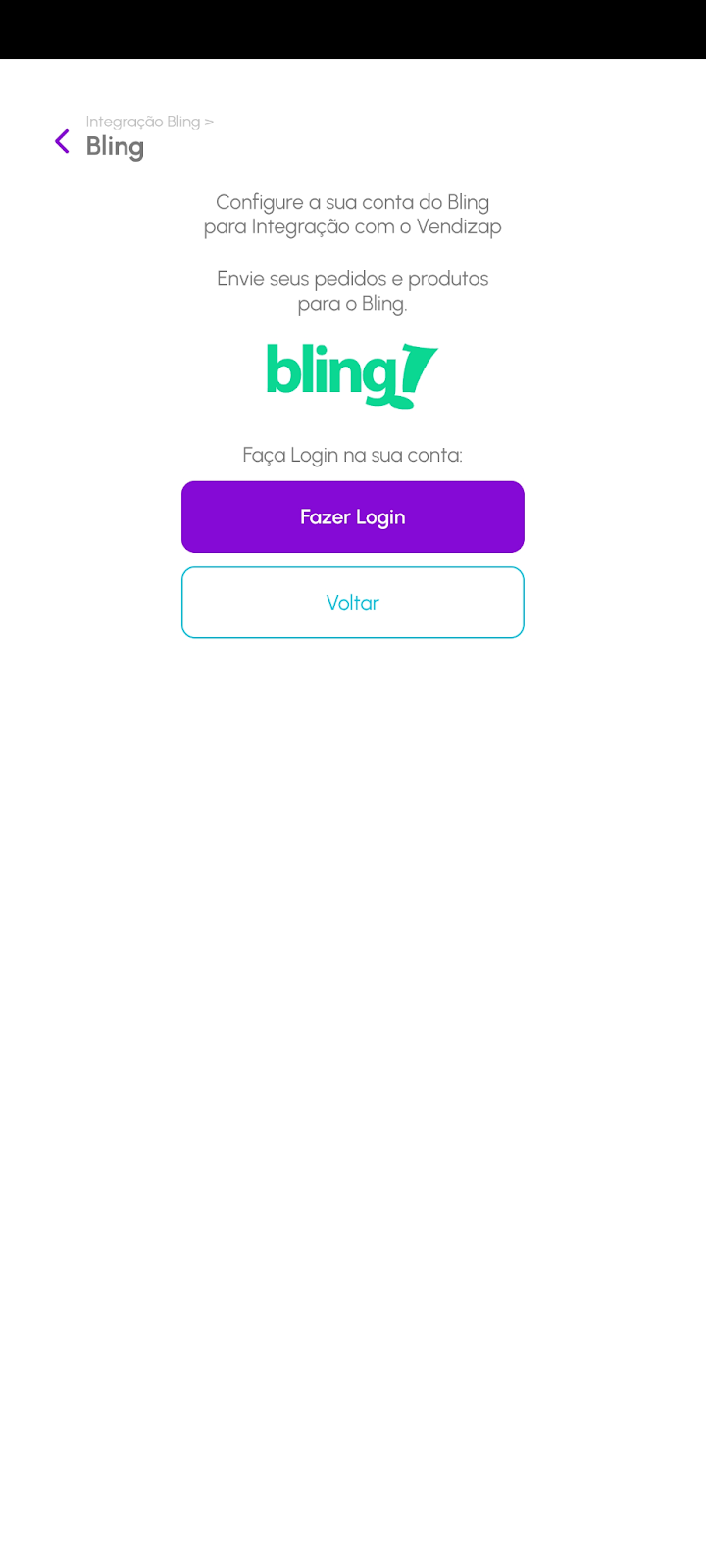 Clique em Fazer login e autentique usando sua conta Bling.