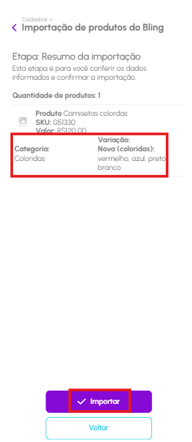 Confira os dados dos produtos e inicie a Importação