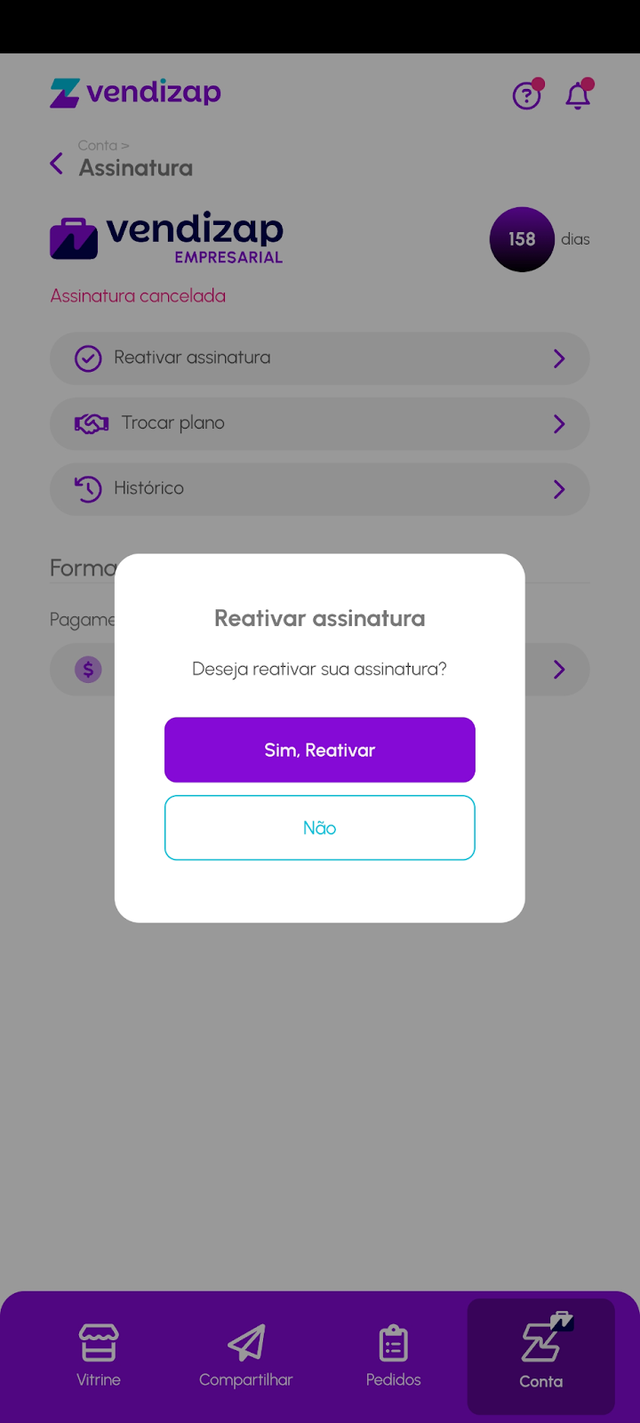 Se a sua conta Vendizap foi cancelada ou está inativa, você pode reativá-la a qualquer momento, com todos os dados e configurações preservados. O processo é simples e rápido.