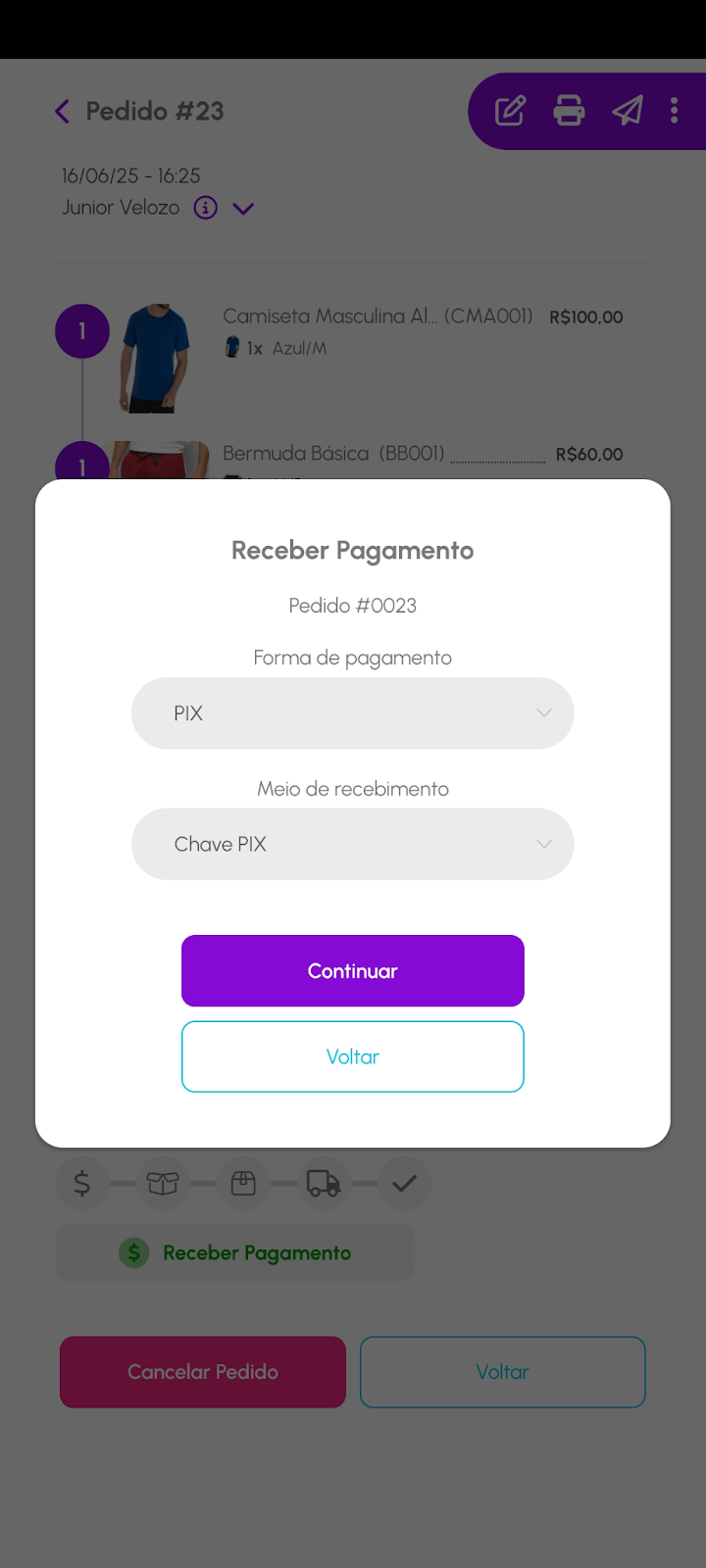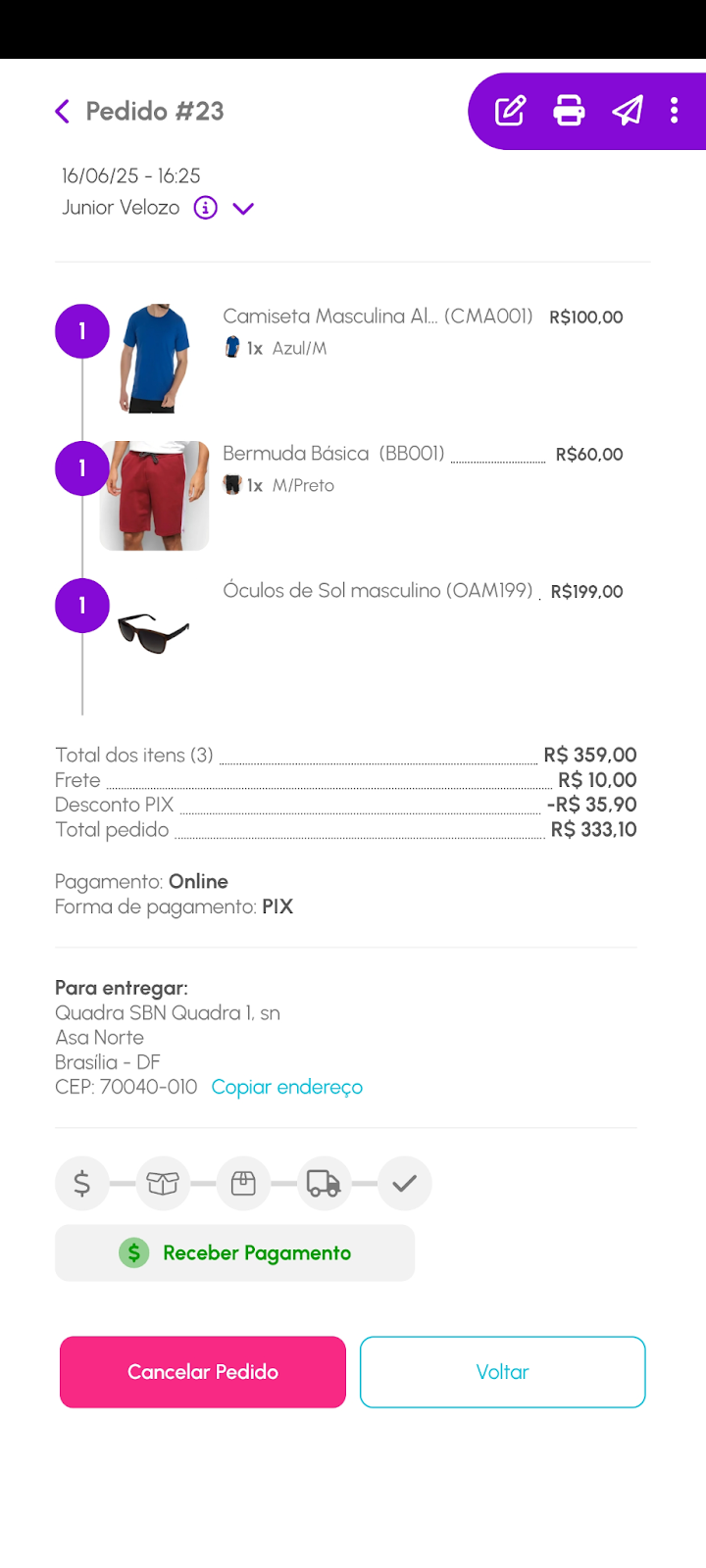 Pago: indica que o pedido já foi pago pelo cliente.