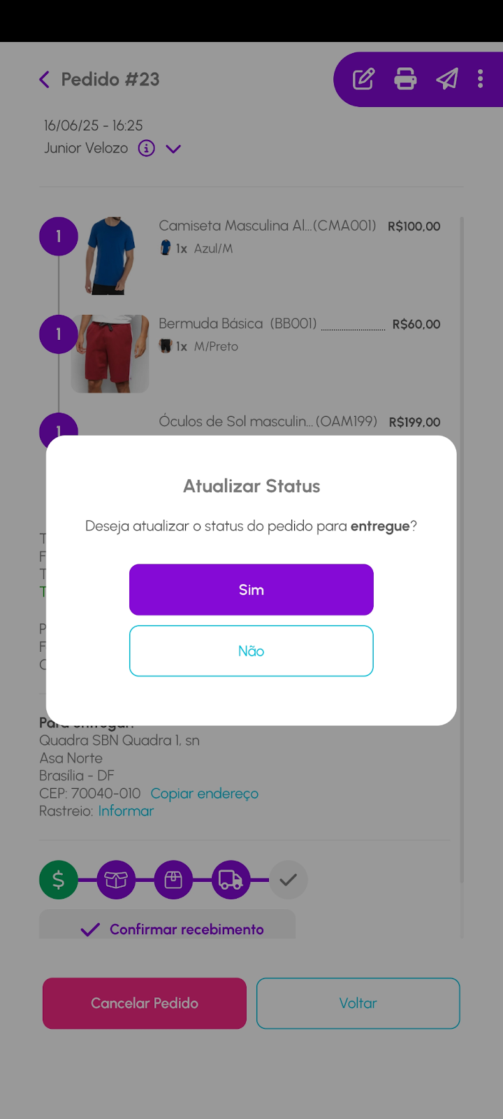 ✅ Pronto! Agora o status do pedido foi atualizado internamente e sua equipe terá o controle do processo de forma organizada.