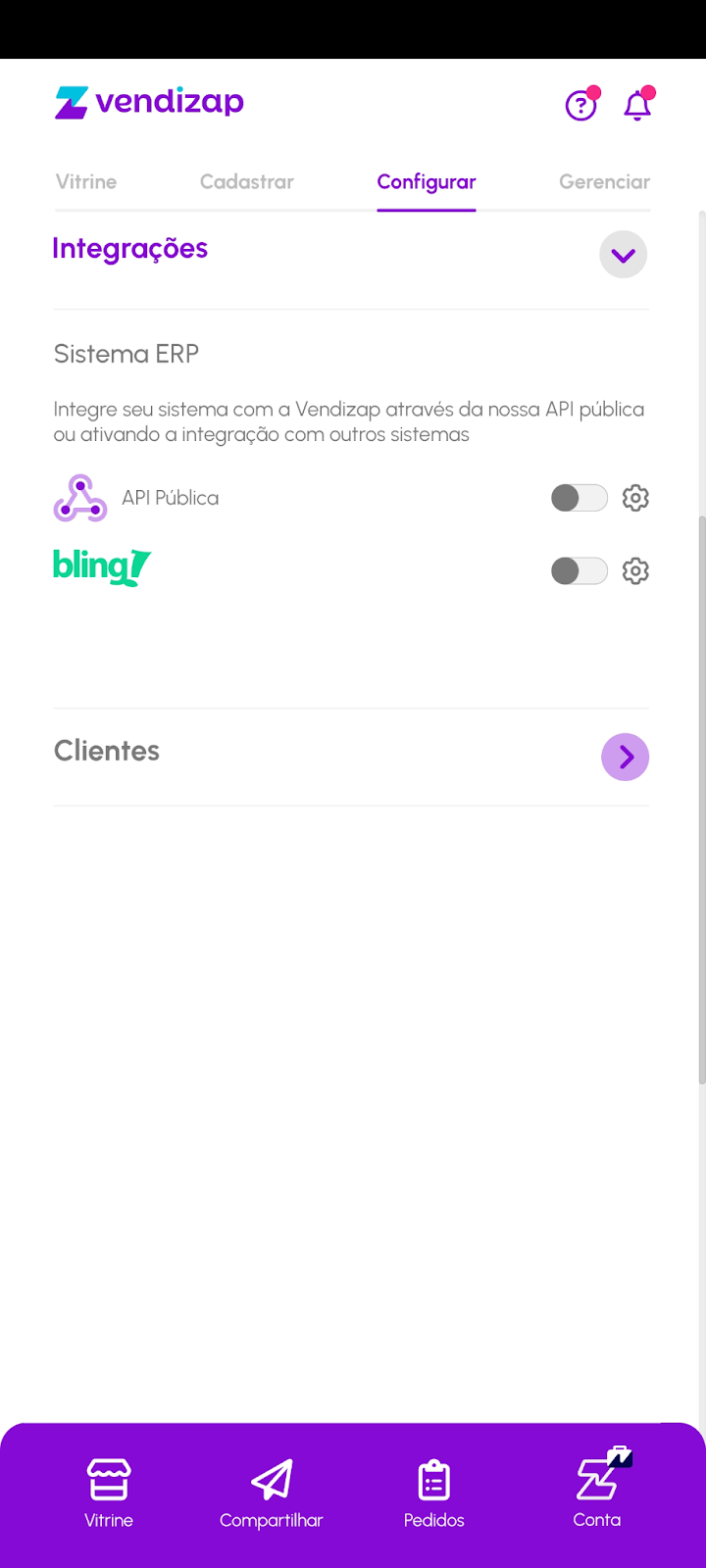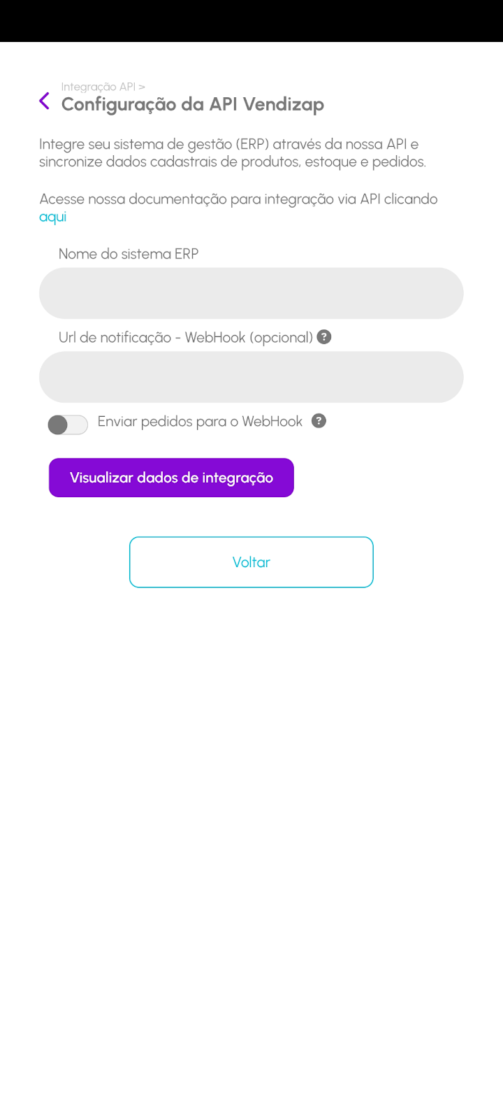 Caso seu ERP não esteja listado acima, ainda é possível integrar utilizando a API pública do Vendizap.