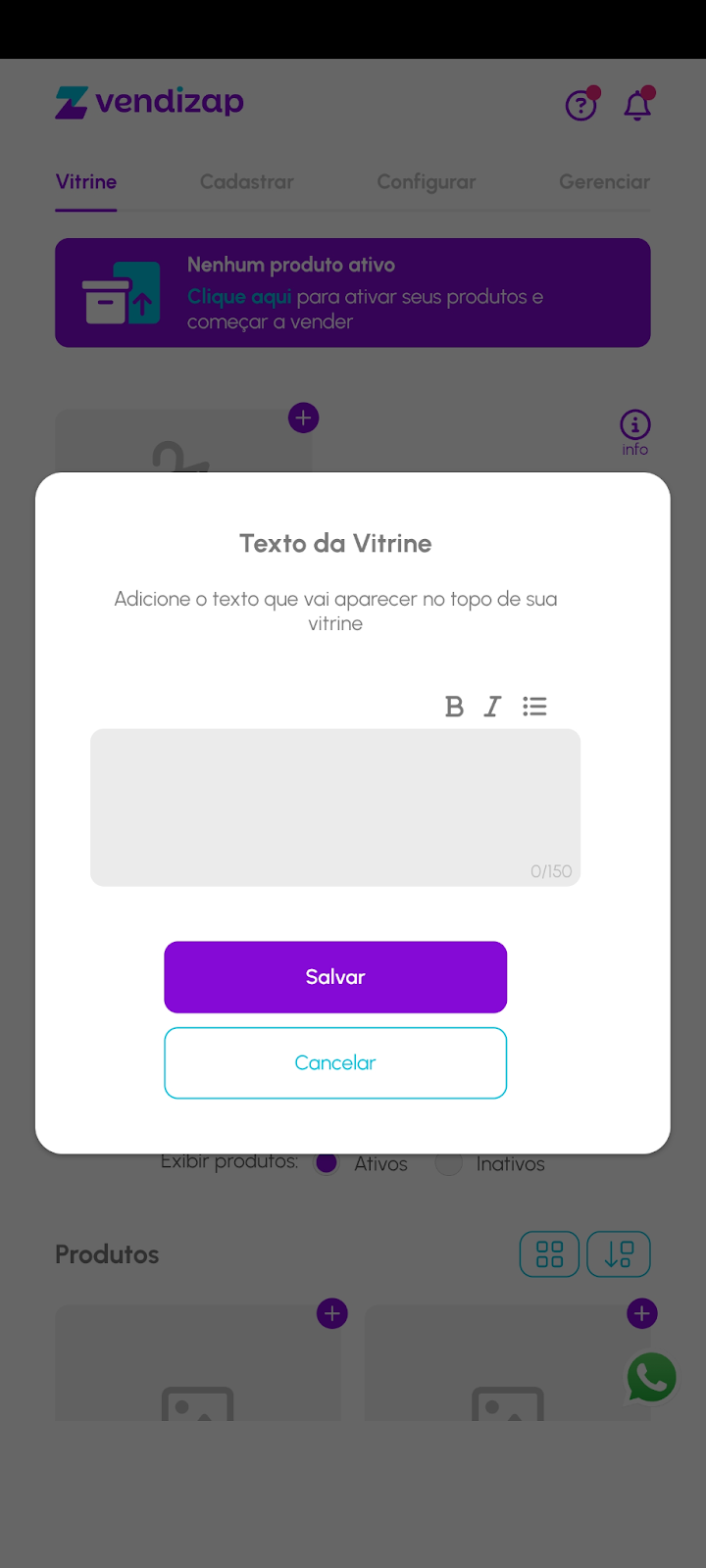 Ele é ideal para boas-vindas, promoções, prazos de entrega ou mensagens rápidas que ajudem o cliente ao acessar a loja.