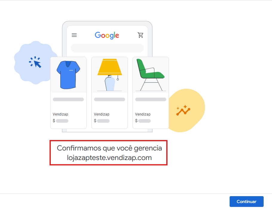 Com o URL verificado e reivindicado clique em continuar.
