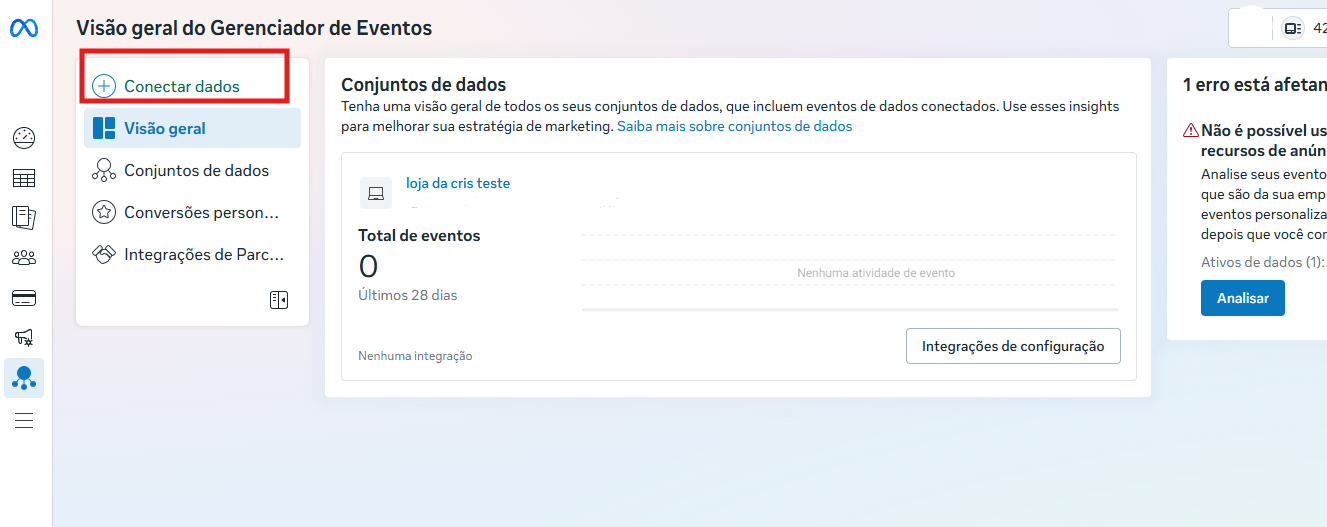 3 – Ao carregar a página Gerenciador de Eventos, acesse no menu lateral esquerdo ‘Conectar fonte de dados.