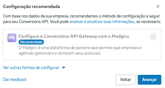 4 - Cole o link no facebook business na aba de eventos de teste, em seguida abrir site.