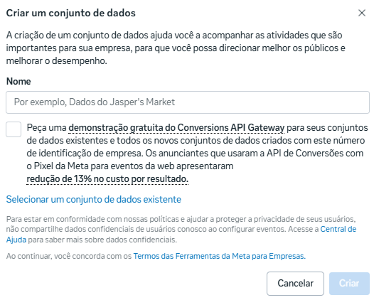 5 – Dê um nome para o seu Pixel, e sem mais nenhuma ação clique em Criar.
