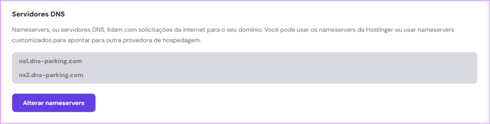 Esse é um exemplo de um domínio comprado na Hostinger e cada plataforma de domínio tem uma configuração diferente!