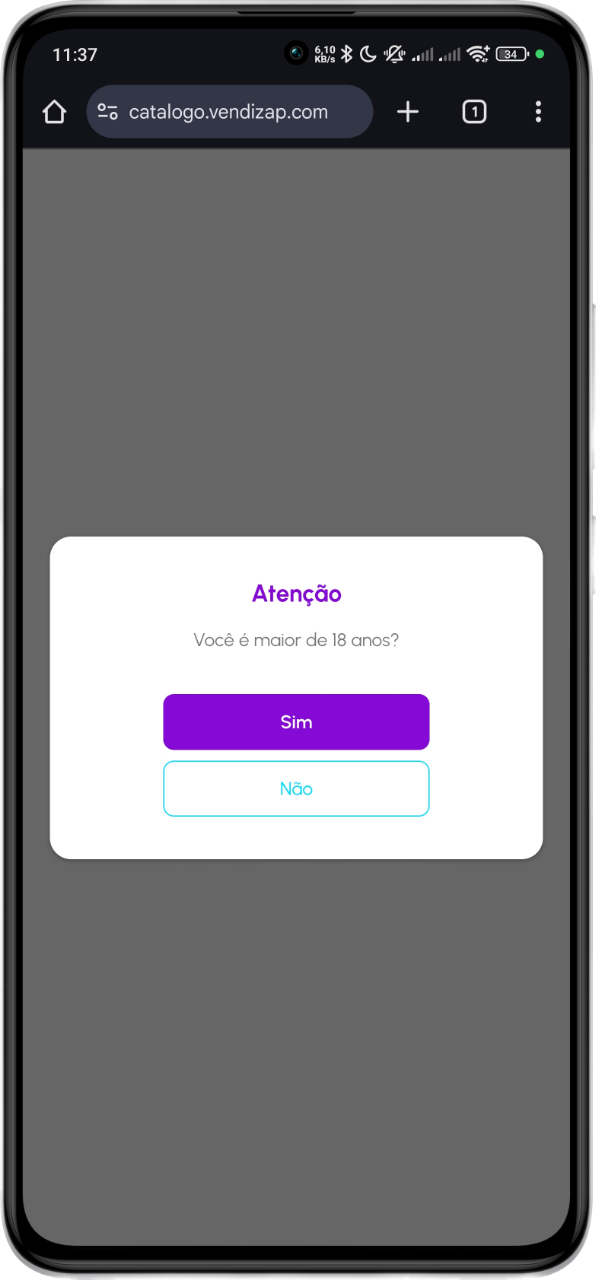 Acesse na sua conta Vendizap o Menu Configurar> Personalização> Localize e desative a opção "Produtos destinados a +18 anos"
